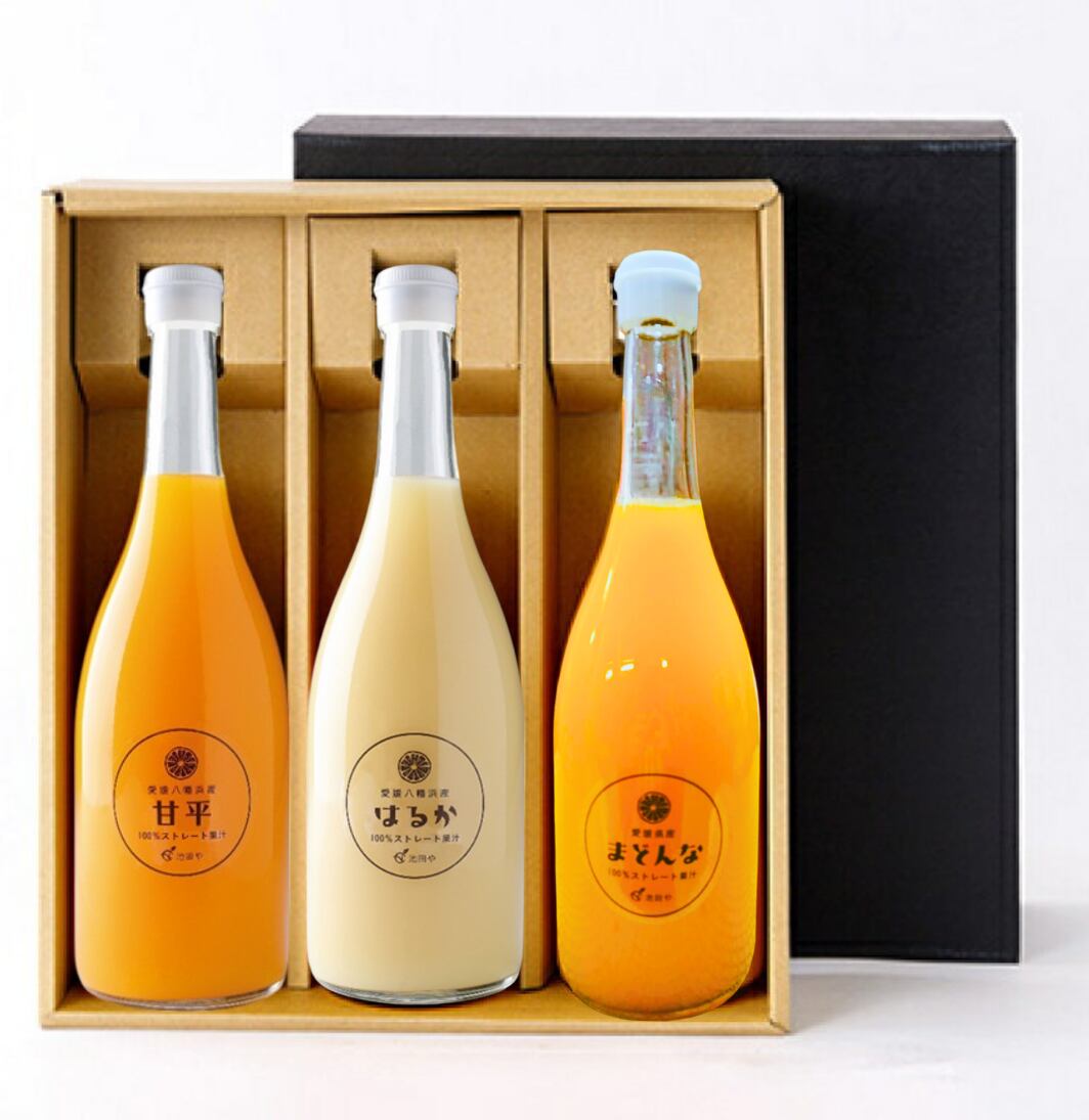 【送料無料】愛媛県産ストレート100%はるか・まどんな・甘平ジュース720ml×3本