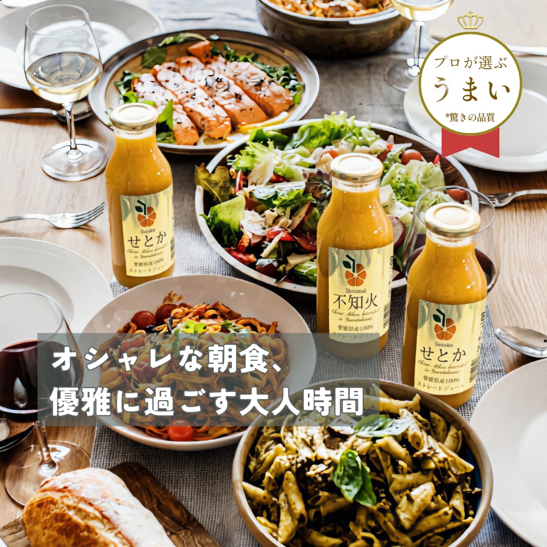【柑橘の大トロ「せとか」を飲む贅沢】 高級柑橘、愛媛県産「せとか」を惜しみなく使用しました。濃厚な甘み、とろけるような口当たり、芳醇な香りをそのままボトルに閉じ込めました。