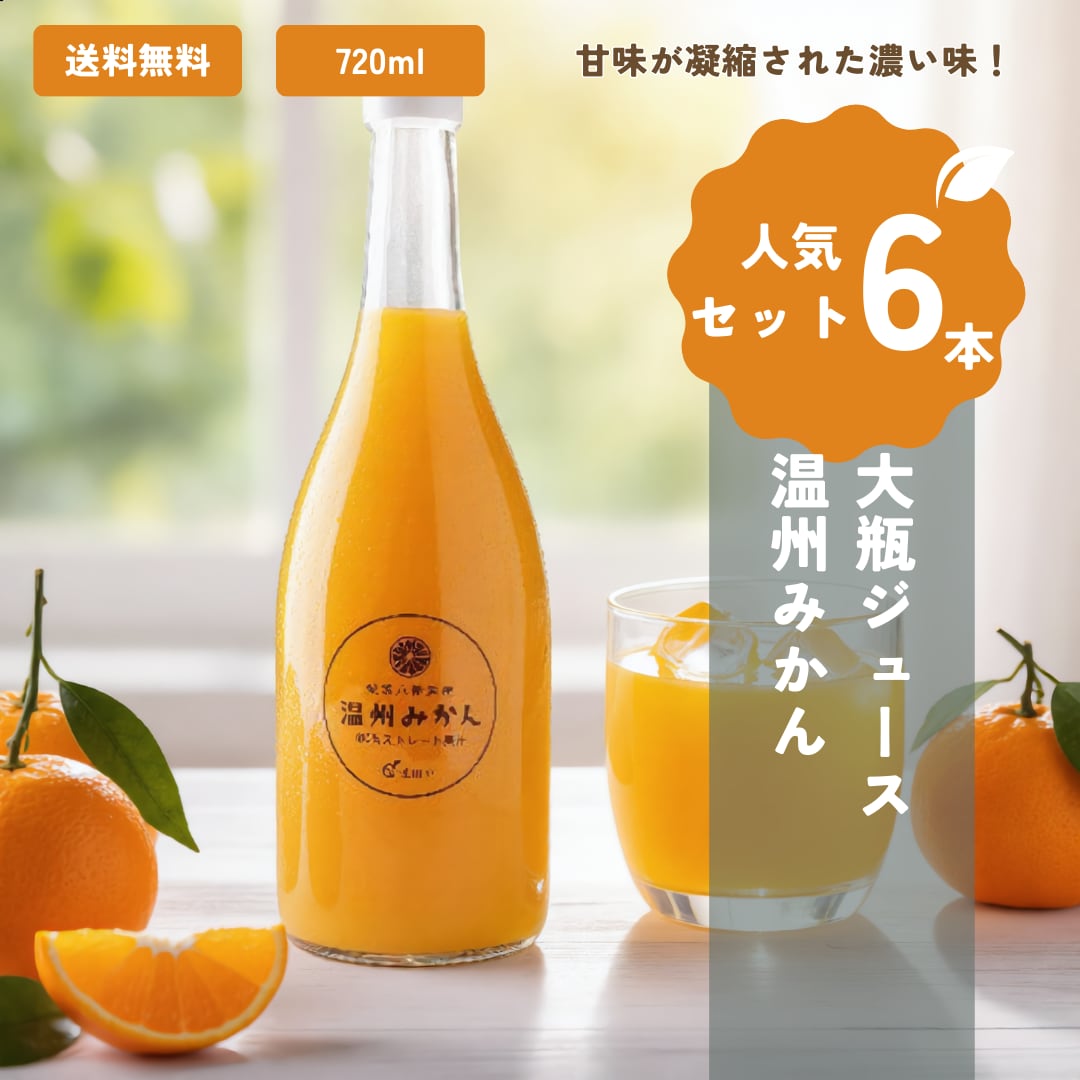 【送料無料・お買い得】愛媛100%ストレート温州みかんジュース720ml×6本