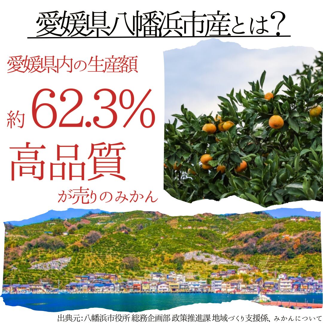 【みかんの名産地・愛媛県八幡浜市産】 日本有数のみかん産地、愛媛県八幡浜市(やわたはまし)からお届けします。リアス式海岸の急斜面に広がる段々畑で、「3つの太陽(空からの光、海からの反射、石垣からの反射)」をたっぷり浴びて育ったみかんは、味が濃く、甘みと酸味のバランスが絶妙です。
